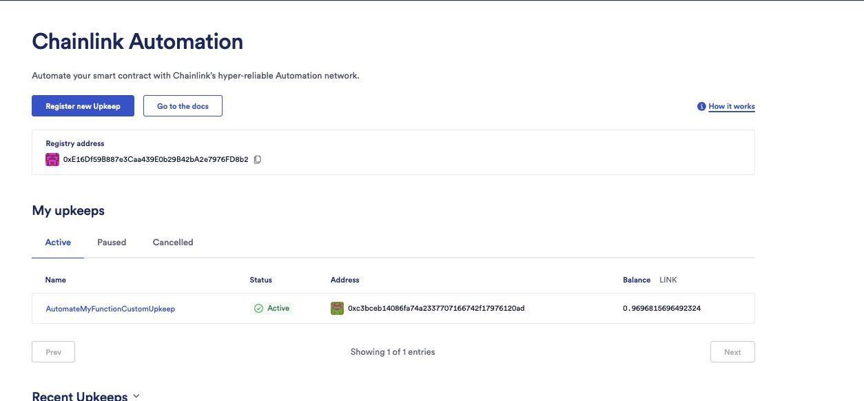 Go to the Chainlink Automation App and connect to the Sepolia testnet. Your upkeep will be listed under My upkeeps: